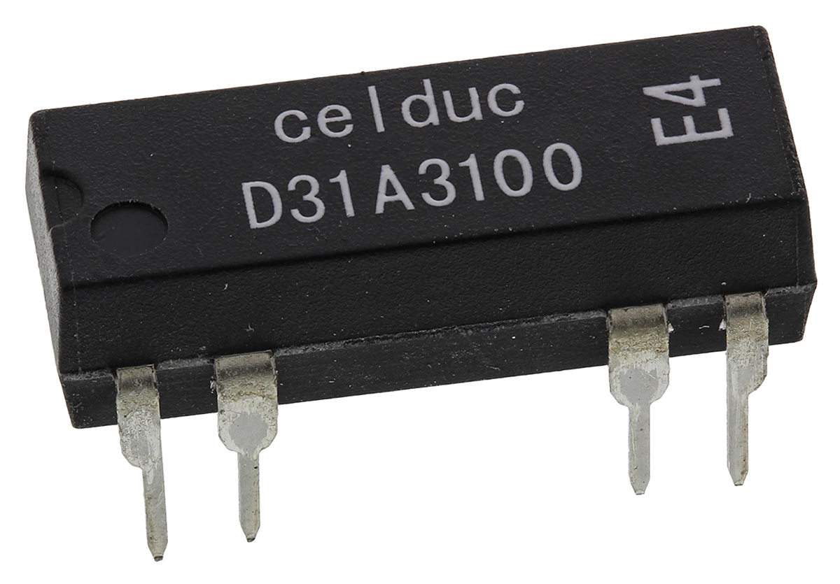 This is SPNO Reed Relay 0.5 A 5V dc manufactured by Celduc. The manufacturer part number is D31A3100. It features a 150 mω contact resistance. It is capable of doing 10000000 (electrical) cycles, 1000000000 (mechanical) cycles in a lifetime . While it carries 100v dc of maximum DC switching voltage. The given dimensions of the product include 19.1 x 6.6 x 6.4mm. The product is available in pcb mount configuration. The product has -40 → +70°c of operating temperature range. Whereas, the minimum operating temperature of the product is -40°c. The coil voltage of the product is 5v dc. Moreover, the product offers a 1ms operating time including bounce . The product comes in 6.6mm depth. In addition, the height is 6.4mm. Its accurate length is 19.1mm. It bears a maximum 10 w of DC switching power. It also features an AC switching power of 10va. The product has 750v ac isolation coil to contact. The product is made from sturdy rhodium materials. It has a maximum operating temperature of +70°c. The terminal is a through hole type. The contact is equipped with spst configuration. It holds up to 500ω coil resistance.