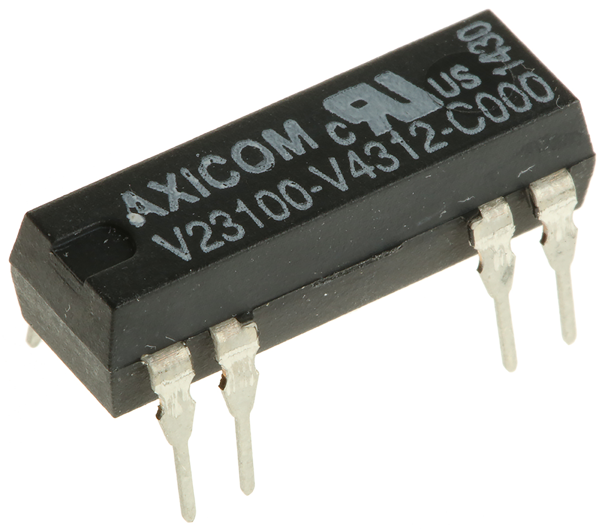 This is SPDT Reed Relay 12V dc manufactured by TE Connectivity. The manufacturer part number is V23100V4312C. It features a 150 mω contact resistance. The given dimensions of the product include 19.3 x 7 x 7.5mm. The coil voltage of the product is 12v dc. It holds up to 1000ω coil resistance. It is capable of doing 50000000 (electrical) cycles in a lifetime . Robust coil power of 144mw. While it carries 175v dc of maximum DC switching voltage. It bears a maximum 3 w of DC switching power. The product has 1.5kv rms isolation coil to contact. It has a maximum operating temperature of +85°c. The terminal is a through hole type. The product has -40 → +85°c of operating temperature range. The contact is equipped with spdt configuration. The product comes in 7mm depth. The product also provides special features, such as high vibration and shock resistance, highly reliable switching. The product is available in pcb mount configuration. Moreover, the product offers a 1.1ms operating time including bounce . Its accurate length is 19.3mm. In addition, the height is 7.5mm. It has a maximum AC switching voltage of 175v ac. Whereas, the minimum operating temperature of the product is -40°c. It also features an AC switching power of 3va. The product is made from sturdy ruthenium materials.