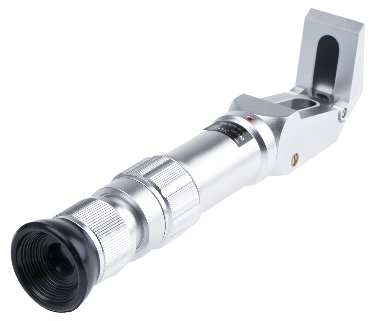 This is Sugar Refractometer 80% max 0% min Optical manufactured by Instruments Direct. The manufacturer part number is 300003. In addition, it is offered with ±1 % best accuracy . It has a minimum 0% measurement capacity . The given dimensions of the product include 1-1/2 (dia.) x 7mm. The typical product's weight is 538.6g. It comes in optical configuration. While it has 300003 of model number. It has a maximum 80% measurement . Its accurate length is 7in. In addition, the product has a/an sugar type refractometer . Features 1 % resolution.
