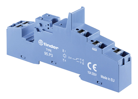 This is Relay Socket DIN Rail for use with 40.31 Relay 86.30 Timer Module manufactured by Finder. The manufacturer part number is 95.P3SPA. The product has a current rating of 10a. The product is available in din rail configuration. The product 95, is a highly preferred choice for users. It carries a 250v ac of voltage. The product is designed with a push in termination. The product is highly suitable for 40.31 relay, 86.30 timer module.