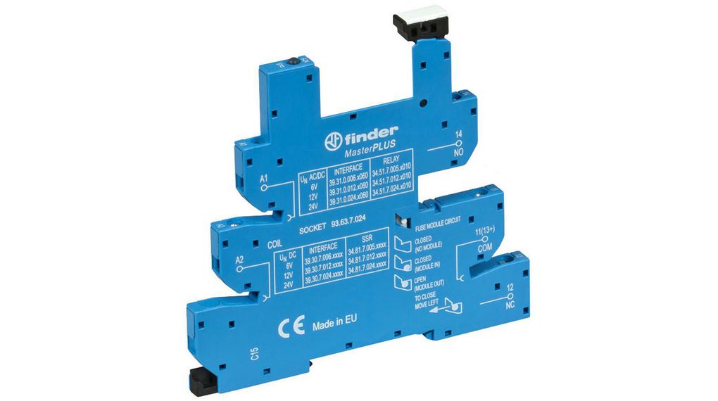 This is 93 6 → 24V DIN Rail Relay Socket for use with 34 Series Relays manufactured by Finder. The manufacturer part number is 93.63.7.024. The product is available in din rail configuration. The product 93, is a highly preferred choice for users. It is a type of screw terminal din/panel mount socket accessory. It carries a 6 → 24v of voltage. The product is highly suitable for 34 series relays.