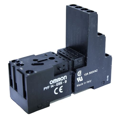 This is MY4 14 Pin 250V ac DIN Rail Relay Socket for use with MY2 MY4 manufactured by Omron. The manufacturer part number is PYF14-ESS-B. The product has a current rating of 12a. The product is available in din rail configuration. The product my4, is a highly preferred choice for users. It is a type of relay socket accessory. It carries a 250v ac of voltage. The product is designed with a screw termination. The product is highly suitable for my2, my4. The product contains 14 contacts.