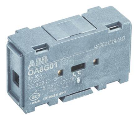 This is Auxiliary Contact Block For Use With OT16 Series manufactured by ABB. The manufacturer part number is OA8G01. The product is highly suitable for ot16 series. It is a type of auxiliary contact block accessory. It is IP rated with ip20.