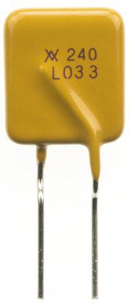 This is 0.33A Hold current Radial Resettable Wire Ended Fuses 240V ac/dc manufactured by Littelfuse. The manufacturer part number is LVR033K-2. It has a minimum 0.77ω resistance . It has approximately 5.8mm pitch wire . It has 0.33 a hold current . It has a 740ma trip current . Moreover, the product has a nominal 240 v ac/dc voltage rating. It has a standard radial lead orientation . Its wire length is about 7.6mm . It has about 1.7w power dissipation . Its body length is 11.4mm. Its body height is 19mm. Carries 21s time to trip. Its overall body width is 3.8mm . The product offers a maximum resistance up to 1.24ω. It has a maximum operating temperature of +85°c. Whereas, the minimum operating temperature of the product is -20°c.