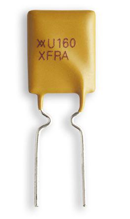 This is 1.6A Hold current Radial Resettable Wire Ended Fuses 30 V ac 30 V dc manufactured by Littelfuse. The manufacturer part number is RF2645-000. It has a minimum 0.03ω resistance . It has approximately 5.8mm pitch wire . It has 1.6 a hold current . It has a 3.2a trip current . It also carries 70 a ac, 100 a dc maximum current. Moreover, the product has a nominal 30 v ac, 30 v dc voltage rating. It has a standard radial lead orientation . Its wire length is about 7.6mm . It has about 0.9w power dissipation . Its body length is 8.9mm. Its body height is 15.2mm. Carries 8s time to trip. Its overall body width is 3mm . The product offers a maximum resistance up to 110mω. It has a maximum operating temperature of +85°c. Whereas, the minimum operating temperature of the product is -40°c.