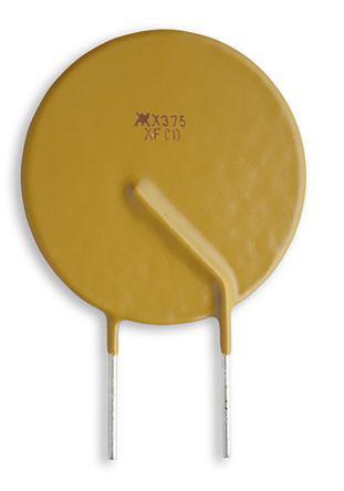 This is 3.75A Hold current Radial Resettable Wire Ended Fuses 72 V dc 72 V ac manufactured by Littelfuse. The manufacturer part number is RF2647-000. It has a minimum 0.03ω resistance . It has approximately 10.9mm pitch wire . It has 3.75 a hold current . It has a 7.5a trip current . It also carries 40 a maximum current. Moreover, the product has a nominal 72 v ac, 72 v dc voltage rating. It has a standard radial lead orientation . Its wire length is about 7.6mm . It has about 3.2w power dissipation . Its body length is 27.2mm. Its body height is 31.8mm. Carries 24s time to trip. Its overall body width is 3mm . The product offers a maximum resistance up to 80mω. It has a maximum operating temperature of +85°c. Whereas, the minimum operating temperature of the product is -40°c.