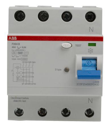 This is 4 Pole Type B Residual Current Circuit Breaker 40A F200 300mA manufactured by ABB. The manufacturer part number is F204B-40/0.3. The product has 10 ka breaking capacity at maximum voltage rating. The product has a current rating of 40a. Moreover, the product has a nominal 400v voltage rating. Allows up to 300ma trip sensitivity. The product f200, is a highly preferred choice for users. It has an overall width of 69mm. This is a type of rccb, a circuit breaker with unique features. Furthermore, the product has an overall dimensions of 70 x 69 x 85mm. The terminal contact is kind of screw. It allows type b tripping features. The product is available in din rail mount style. It has an overall length of 70mm. Similarly, the product has 85mm of overall depth. The product also provides special features, such as earth fault safety protection. It has equipped with 4 poles. It is a toggle switch reset actuator. It has a/an time delay break time .
