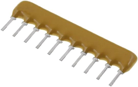 This is Bussed Resistor Network 2.2kΩ ±2% 9 Resistors 1.25W Total SIP package 4600X Through Hole manufactured by Bourns. The manufacturer part number is 4610X-101-222LF. It has a power rating of 0.2w per resistor . It has a/an bus designator circuit . It has a maximum operating temperature of +125°c. The given dimensions of the product include 2.49 x 5.08 x 25.35mm. The product 4600x, is a highly preferred choice for users. The product is designed with a/an network type resistor . Moreover, it has through hole terminal style. Its accurate length is 25.35mm. It exhibits an excellent temperature coefficient of ±100ppm/°c. In addition, the height is 5.08mm. The product comes in 2.49mm depth. It comprises 9 resistors. Whereas, the minimum operating temperature of the product is -55°c. Moreover, the casing is designed in conformal format and style. Feature 1.25w of power rating. Concerning its package and casing, it is sip. It features ±2% of tolerance value. It includes 10 dedicated terminals . It carries 2.2kω resistance.
