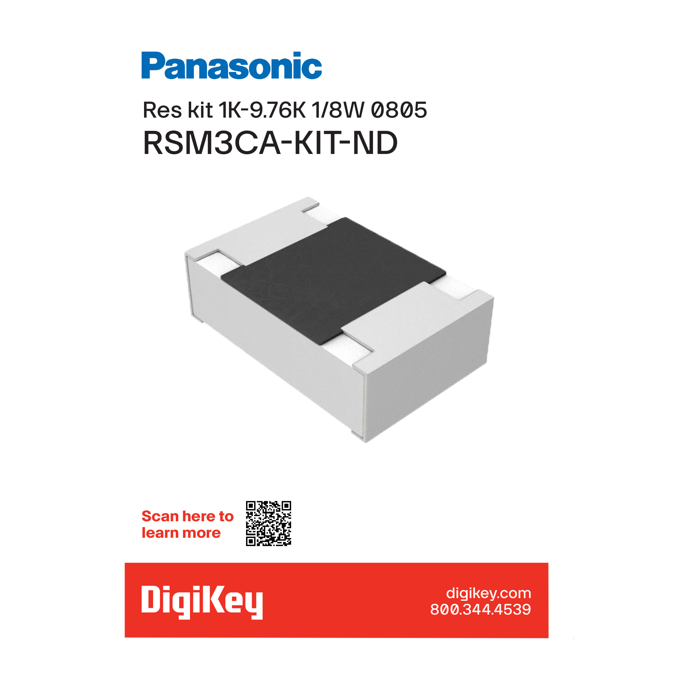 This is manufactured by Panasonic Electronic Components. The manufacturer part number is RSM3CA. It also includes 0805 (2012 metric) packages. The panasonic electronic components's product offers user-desired applications. Moreover, the given resistance of the product is 1k ~ 9.76k. The thick film is designed to provide robust applications in a variety of specific settings. The splendid features of the product include automotive aec-q200. It is assigned with possible HTSUS value of 8533.21.0030. The product is rohs compliant. The product erj, is a highly preferred choice for users. Its typical moisture sensitivity level is 1 (unlimited). In addition, bag is the available packaging type of the product. The product features power and watts of 1/8w. The product is available in surface mount configuration. The product is designated with the ear99 code number. It features ±1% of tolerance value. Available in 4800 pieces (96 values - 50 each) quantity.
