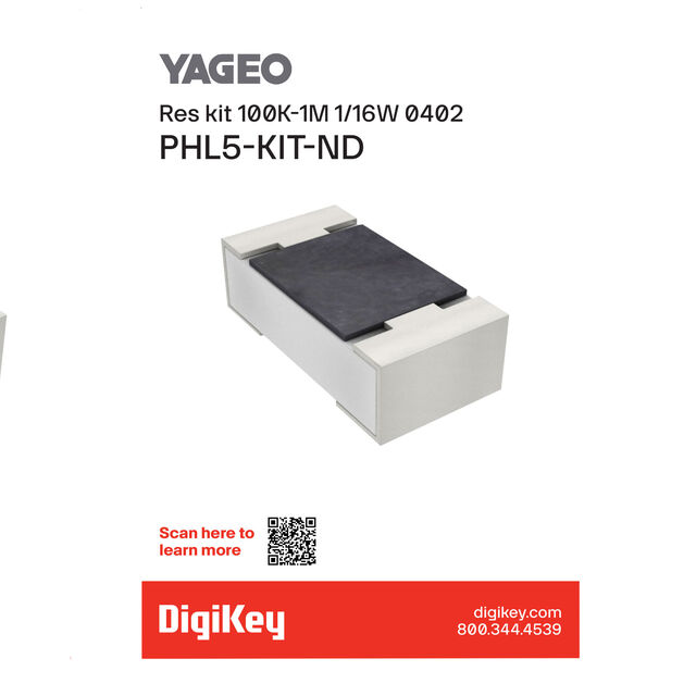 This is manufactured by Yageo. The manufacturer part number is PHL5-KIT. It is assigned with possible HTSUS value of 8533.21.0030. The product is rohs3 compliant. The product features power and watts of 1/16w. It features ±1% of tolerance value. Moreover, the given resistance of the product is 100k ~ 1m. In addition, it is reach unaffected. The yageo's product offers user-desired applications. Its typical moisture sensitivity level is 1 (unlimited). It also includes 0402 (1005 metric) packages. Available in 1600 pieces (32 values - 50 each) quantity. The thick film is designed to provide robust applications in a variety of specific settings. The splendid features of the product include moisture resistant. The product is available in surface mount configuration. The product rc_l, is a highly preferred choice for users. In addition, book is the available packaging type of the product. The product is designated with the ear99 code number.