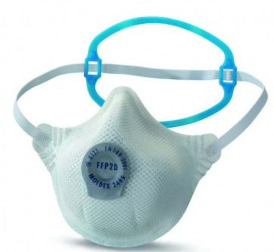 This is Air Respirator Respirator Mask manufactured by Moldex. The manufacturer part number is 2495. It has a decent blue, white colour. It comes in air respirator configuration. The product includes replacement filters no . It has an hypoallergenic feature no . The product is available in one size size.