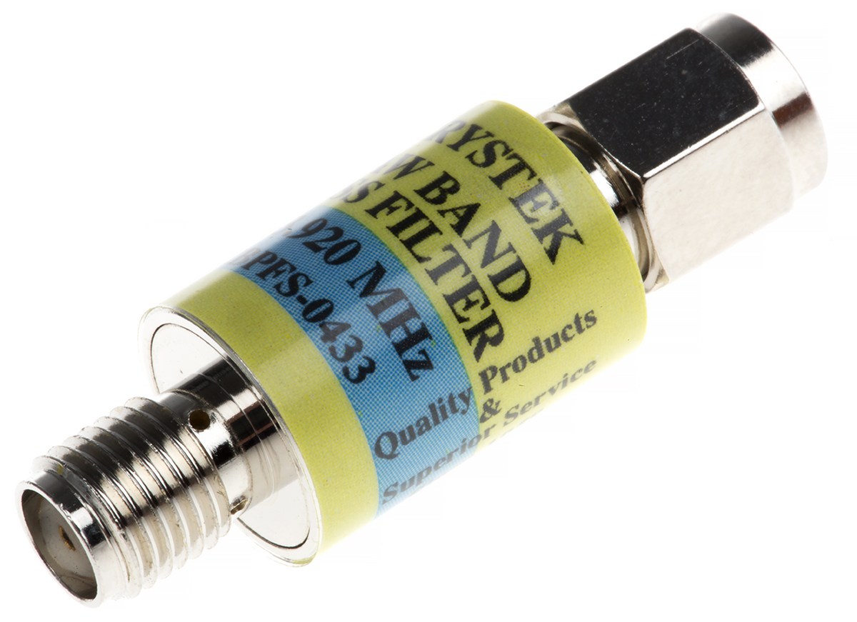 This is SAW Band Pass Filter RF Adapter manufactured by Crystek. The manufacturer part number is CBPFS-0433. Its accurate length is 33.34mm. The adapter is a saw band pass filter.
