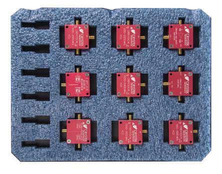 This is manufactured by Crystek. The manufacturer part number is RFLABKIT-001. The adapter is a amplifiers, dc blocks, dual o/p voltage regulators, filters, passive doublers, pocket reference oscillators, various attenuators.