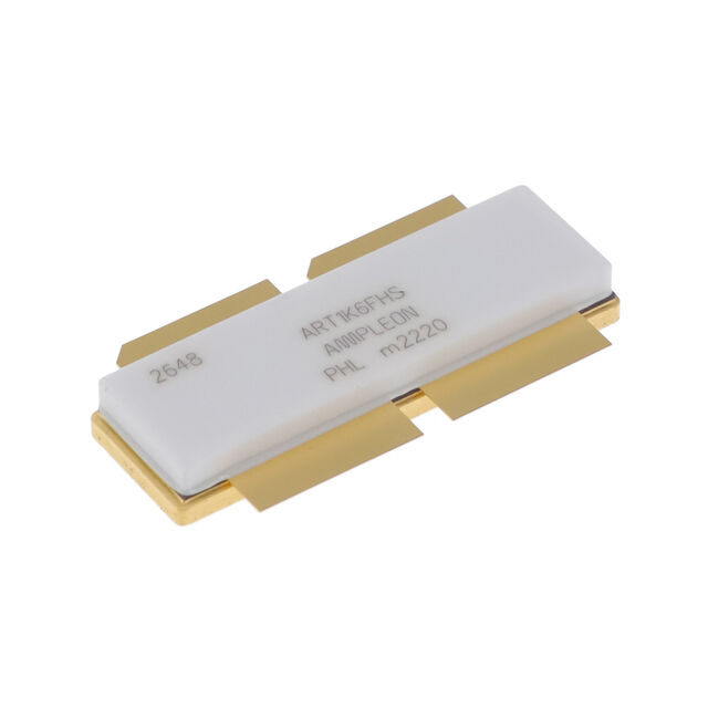 This is manufactured by Ampleon USA Inc.. The manufacturer part number is ART1K6FHSU. It is assigned with possible HTSUS value of 8541.29.0075. The product is rohs3 compliant. Moreover, the product comes in sot-539bn. The given current test of the product is [Current -Test]. It also exhibits voltage rating of 177 v. In addition, it is reach unaffected. The 28db is the gain value of a bespoke product. The product is available in dual, common source configuration. The ampleon usa inc.'s product offers user-desired applications. Its typical moisture sensitivity level is 1 (unlimited). It has a long 16 weeks standard lead time. The product is available in surface mount configuration. The product art, is a highly preferred choice for users. sot539bn is the supplier device package value. The product has a test voltage of 65 v . In addition, tray is the available packaging type of the product. Supplied with 1mhz ~ 425mhz of frequency. The product has an output power 1600w. This product use ldmos technology. The product is designated with the ear99 code number.