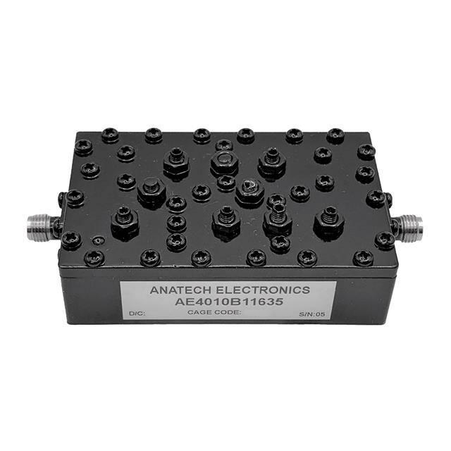 This is manufactured by Anatech Electronics Inc.. The manufacturer part number is AE4010B11635. It is assigned with possible HTSUS value of 8542.31.0000. The product is not applicable. Moreover, the product comes in module, sma connectors. Additionally, the 0.984" (25.00mm) is the maximum height of the product. In addition, it is reach unaffected. It is shipped in box package . The product's diameters include 2.638" l x 1.654" w (67.00mm x 42.00mm). The filter is a band pass type with excellent features. Its typical moisture sensitivity level is 1 (unlimited). Allows 3.5db of insertion loss. The product is available in chassis mount configuration. Has 15mhz bandwidth. Supplied with 4.01ghz center of frequency. The product is designated with the ear99 code number.
