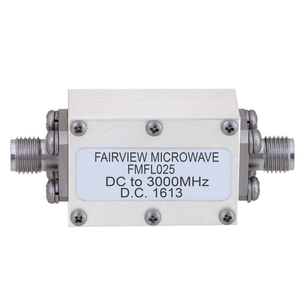 This is manufactured by Fairview Microwave. The manufacturer part number is FMFL025. The product's diameters include 1.098" l x 0.752" w (27.90mm x 19.10mm). The product is available in chassis mount configuration. Additionally, the 0.598" (15.20mm) is the maximum height of the product. The product is rohs3 compliant. Its typical moisture sensitivity level is 1 (unlimited). In addition, bag is the available packaging type of the product. Has 3ghz bandwidth. Supplied with 1.5ghz center of frequency. Moreover, the product comes in module, sma connectors. The filter is a low pass type with excellent features. It has a long 12 weeks standard lead time. Allows 1db of insertion loss. The fairview microwave's product offers user-desired applications.