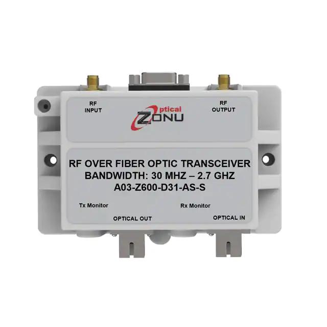 This is manufactured by Optical Zonu Corporation. The manufacturer part number is A03-Z600-D31-AS-S. It is assigned with possible HTSUS value of 8517.62.0050. The product is rohs3 compliant. It performs basic function of transceiver. In addition, it is reach unaffected. The product is widely employed in gps. A bespoke product is connector interface. It has gps modulation/protocol. It is shipped in box package . Its typical moisture sensitivity level is not applicable. Supplied with 20mhz ~ 3ghz of frequency. It has optimum voltage supply of 8v ~ 32v. The product has an output power 6mw. The product is designated with the 5a991 code number.
