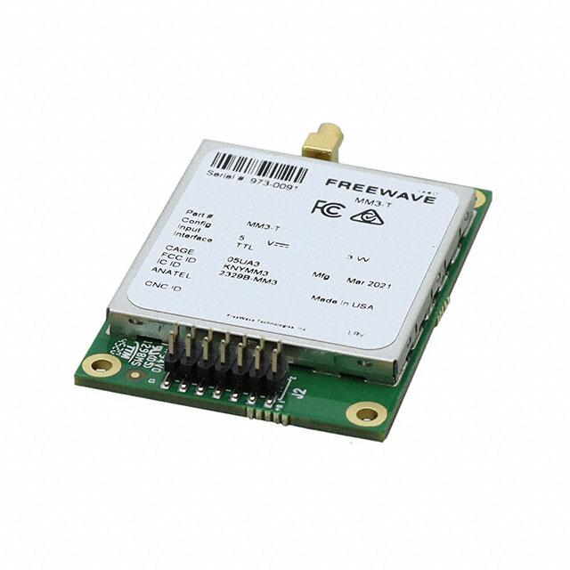 This is manufactured by FreeWave Technologies. The manufacturer part number is MM3-T. It is assigned with possible HTSUS value of 8517.62.0090. The product is rohs non-compliant. The product has -40°c ~ 85°c operating temperature range. Moreover, the product comes in module. It carries 855ma transmission current. The current receiving of the product is 90ma. Features gfsk modulation. It has a maximised data speed rate of 115.2kbps, 153.6kbps. Its typical moisture sensitivity level is 1 (unlimited). It has a long 2 weeks standard lead time. The product is available in chassis mount configuration. It is a antenna not included antenna. The product mm3, is a highly preferred choice for users. The sensitivity given includes -108dbm. It features serial ttl serial interface. In addition, box is the available packaging type of the product. Supplied with 902mhz ~ 928mhz of frequency. It has optimum voltage supply of 4.75v ~ 5.25v. The product is designated with the 5a002a fwt code number.