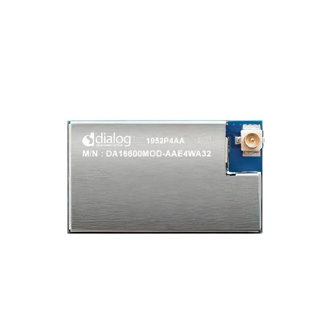 This is manufactured by Renesas Design Germany GmbH. The manufacturer part number is DA16600MOD-AAE4WA32. It is assigned with possible HTSUS value of 8517.62.0090. The product is rohs compliant. It holds a typical memory size of 4mb flash. Moreover, the product comes in 51-smd module. It has a maximised data speed rate of 72mbps. It is shipped in tape & reel (tr) package . Its typical moisture sensitivity level is 3 (168 hours). The standard RF Family of the product includes bluetooth, wifi. It has a long 18 weeks standard lead time. The product features a 802.11n, bluetooth v5.1 protocol. Additionally, [Utilised IC / Part] is the used part of the product. The product is available in surface mount configuration. It is a antenna not included, u.fl antenna. The product da16600mod-aa, is a highly preferred choice for users. The sensitivity given includes -98.5dbm. It features adc, gpio, i²c, i²s, pwm, spi, swd, jtag, uart serial interface. Supplied with 2.4ghz of frequency. It has optimum voltage supply of 3.3v. The product has an output power 18.5dbm. The product is designated with the 5a992c code number.