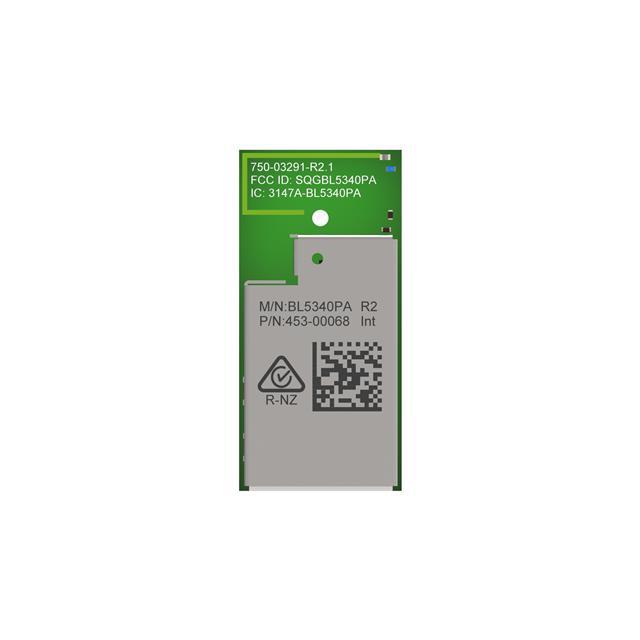 This is manufactured by Laird Connectivity Inc.. The manufacturer part number is 453-00068R. It is assigned with possible HTSUS value of 8517.62.0090. The product is rohs3 compliant. The product has -40°c ~ 105°c operating temperature range. It holds a typical memory size of 1mb flash, 512kb ram. Moreover, the product comes in 97-bflga module. It carries 99.7ma transmission current. The current receiving of the product is 11.6ma. Features o-qpsk modulation. In addition, it is reach unaffected. It has a maximised data speed rate of 106kbps. It is shipped in tape & reel (tr) package . Its typical moisture sensitivity level is 4 (72 hours). The standard RF Family of the product includes 802.15.4, bluetooth. It has a long 16 weeks standard lead time. The product features a bluetooth v5.2, zigbee® protocol. Additionally, [Utilised IC / Part] is the used part of the product. The product is available in surface mount configuration. It is a integrated, chip antenna. The product bl5340pa, is a highly preferred choice for users. The sensitivity given includes -108.5dbm. It features spi, uart, usb serial interface. Supplied with 2.4ghz of frequency. It has optimum voltage supply of 3v ~ 3.6v. The product has an output power 18.5dbm. Moreover, it corresponds to 453-00068, a base product number of the product. The product is designated with the 5a992c sc code number.