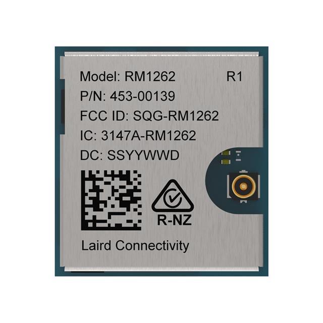 This is manufactured by Laird Connectivity Inc.. The manufacturer part number is 453-00139R. It is assigned with possible HTSUS value of 8517.62.0090. The product has -40°c ~ 85°c operating temperature range. Moreover, the product comes in 47-smd module. It carries 25ma ~ 107ma transmission current. The current receiving of the product is 7.6ma ~ 8.1ma. Features fsk modulation. In addition, it is reach unaffected. It has a maximised data speed rate of 1mbps. It is shipped in tape & reel (tr) package . Its typical moisture sensitivity level is 4 (72 hours). The standard RF Family of the product includes general ism < 1ghz. It has a long 34 weeks standard lead time. The product features a lora™, lorawan protocol. The product is available in surface mount configuration. It is a antenna not included antenna. The sensitivity given includes -139.2dbm. It features adc, gpio, i2c, i2s, irda, pwm, spi, uart serial interface. Supplied with 863mhz ~ 870mhz, 902mhz ~ 928mhz of frequency. It has optimum voltage supply of 2v ~ 3.7v. The product has an output power 22dbm. The product is designated with the 5a992c 24 code number.