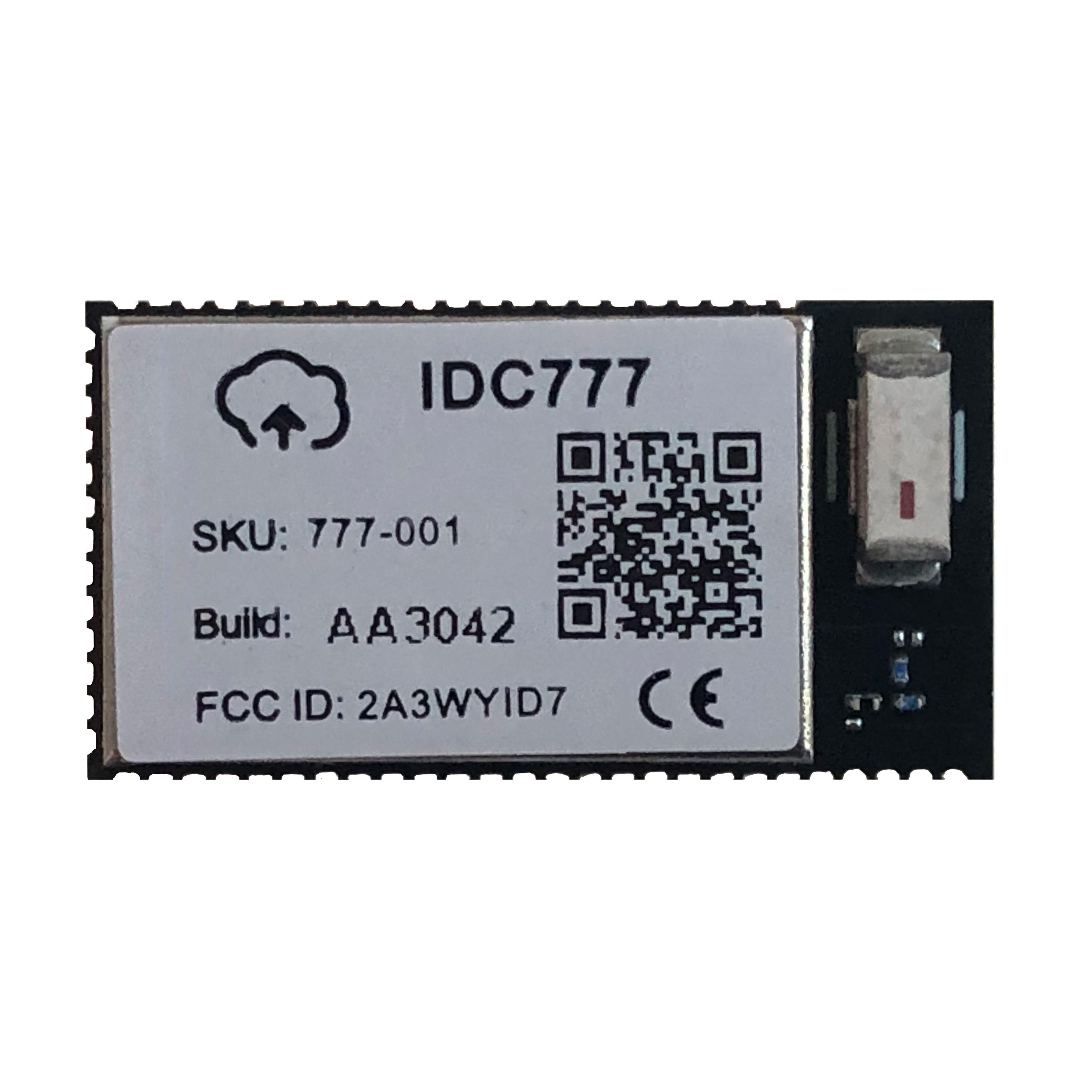 This is manufactured by IOT747. The manufacturer part number is IDC777-1. It is assigned with possible HTSUS value of 8517.62.0090. The product is rohs3 compliant. The product has -40°c ~ 85°c operating temperature range. Moreover, the product comes in 60-smd module. Features 4dqpsk, 8dpsk, gfsk modulation. It has a maximised data speed rate of 3mbps. It is shipped in tape & reel (tr) package . Its typical moisture sensitivity level is 3 (168 hours). The standard RF Family of the product includes bluetooth. It has a long 30 weeks standard lead time. The product features a bluetooth v5.4 protocol. The product is available in surface mount configuration. It is a integrated, chip antenna. The sensitivity given includes -97dbm. It features aio, gpio, i2c, i2s, pcm, uart, usb serial interface. Supplied with 2.4ghz of frequency. It has optimum voltage supply of 3.3v ~ 4.7v. The product has an output power 15dbm. Moreover, it corresponds to idc777, a base product number of the product. The product is designated with the 5a992c code number.