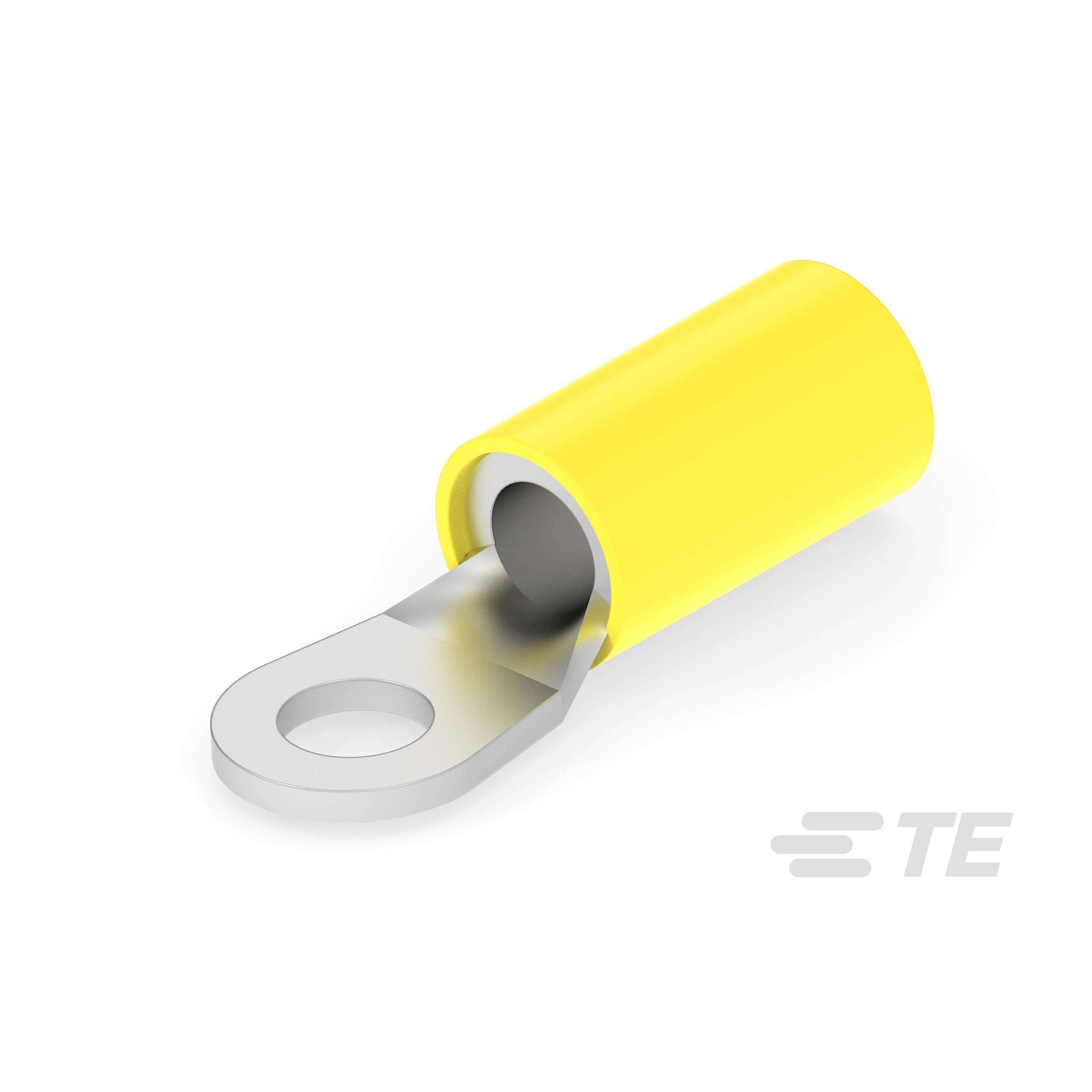 This is manufactured by TE Connectivity AMP Connectors. The manufacturer part number is 165412. It is assigned with possible HTSUS value of 8536.90.4000. The product is rohs compliant. It is 0.039" (0.99mm) thick. It is designed from highly reliable poly-vinyl chloride (pvc) insulating material. The product has an integral 0.972" (24.70mm) overall length. In addition, it is vendor undefined. The product's insulation diameter includes 0.220" (5.59mm). The terminal is a circular type. The te connectivity amp connectors's product offers user-desired applications. Moreover, the product has a wire gauge of 10-11.5 awg. Its outer edges are 0.315" (8.00mm) wide. Furthermore, the product is galvanized with excellent tin contact finishing. Its typical moisture sensitivity level is 1 (unlimited). The product features crimp termination style. It has a long 32 weeks standard lead time. The product consists of 4 stud. The splendid features of the product include serrated termination. The product is available in free hanging (in-line) configuration. It has a classic yellow colour. The product plasti-grip, solistrand, is a highly preferred choice for users. In addition, bulk is the available packaging type of the product. Insulation Option: insulated. The product is designated with the ear99 code number. The product is made from sturdy copper materials.