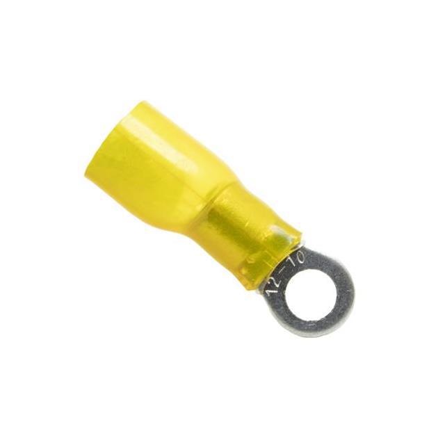 This is manufactured by Mueller Electric Co. The manufacturer part number is BU-191640063. It is assigned with possible HTSUS value of 8536.90.4000. The product is rohs3 compliant. It is 0.038" (0.97mm) thick. It is designed from highly reliable nyax insulating material. The product has an integral 1.150" (29.21mm) overall length. In addition, it is reach unaffected. The product's insulation diameter includes 0.240" (6.10mm). The terminal is a circular type. It is shipped in bag package . Moreover, the product has a wire gauge of 10-12 awg. Its outer edges are 0.342" (8.69mm) wide. Furthermore, the product is galvanized with excellent electro-tin contact finishing. Its typical moisture sensitivity level is 1 (unlimited). The product features crimp termination style. It has a long 4 weeks standard lead time. The product consists of 10 stud. The product is available in free hanging (in-line) configuration. It has a classic yellow colour. Insulation Option: insulated with heat shrink. The product is designated with the ear99 code number. The product is made from sturdy copper alloy materials.
