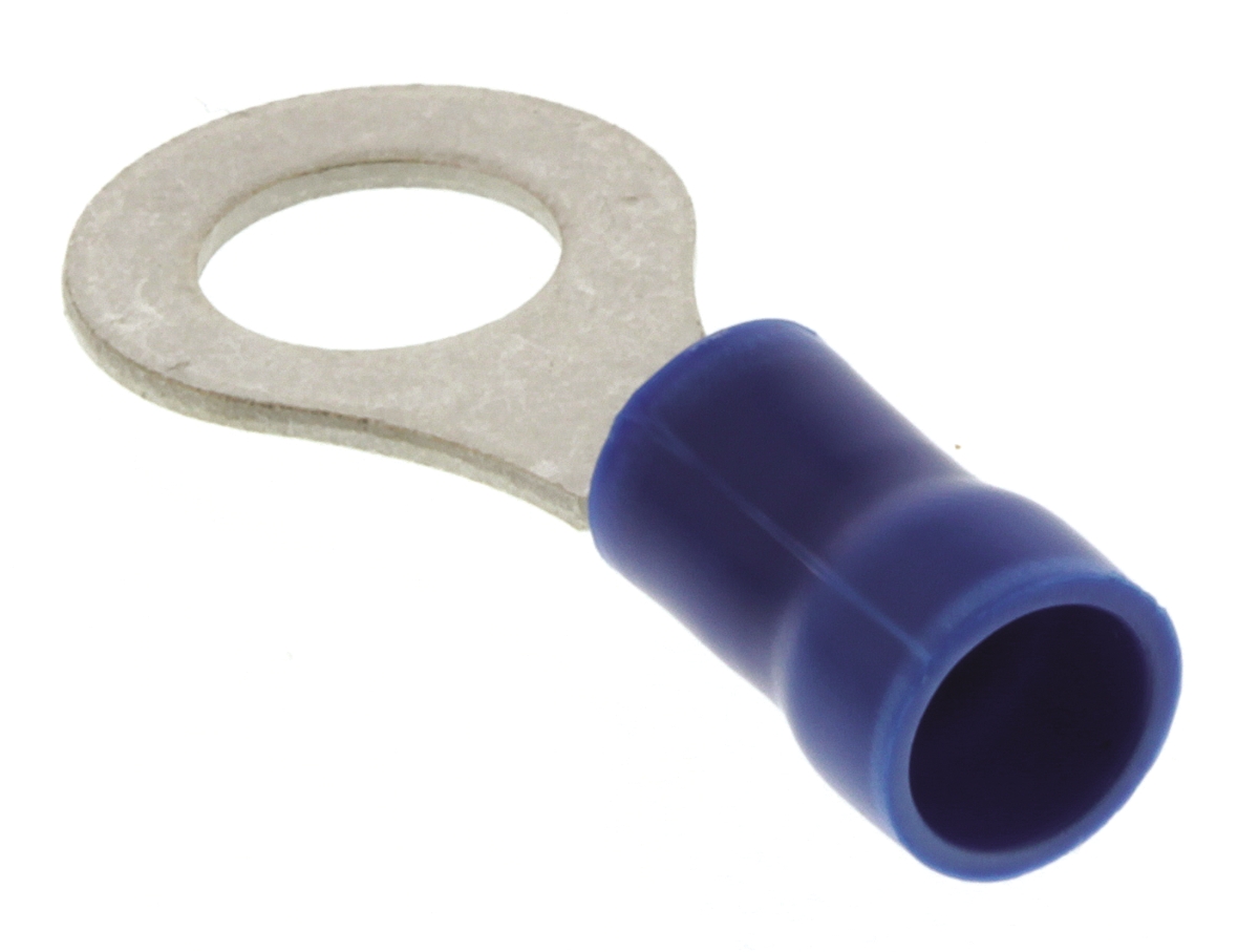 This is PLASTI-GRIP Series Insulated Tin Plated Crimp Ring Terminal M6 Stud Size 1mm² to 2.5mm² 16AWG manufactured by TE Connectivity. The manufacturer part number is 342145-1. The wire has a maximum size of 2.5mm². The product plasti-grip, is a highly preferred choice for users. It has a decent blue colour. While the minimum wire size AWG includes 16awg. It has a standard m6 size stud . In addition, its outlet ring diameter is about 11.9mm . Moreover, the inner ring is about 6mm in diameter . It has a robust vinyl insulation material. The high-quality tin is used as contact plating material. It has an overall length of 27mm. Insulation Option: insulated. Its maximum wires size includes 14awg. On the other hand, the wire has 1mm² of minimum size. The product is made from sturdy copper materials.