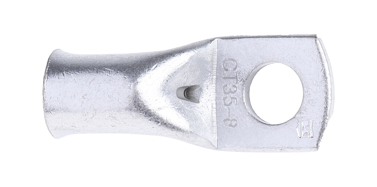 This is CT Series Uninsulated Tin Plated Tubular Ring Terminal M8 Stud Size 35mm² to 35mm² manufactured by RS Pro. The manufacturer part number is 241-4631. The wire has a maximum size of 35mm². It has a standard m8 size stud . Moreover, the inner ring is about 8mm in diameter . The high-quality tin is used as contact plating material. It has an overall length of 37.6mm. Insulation Option: uninsulated. The product is made from sturdy copper materials.
