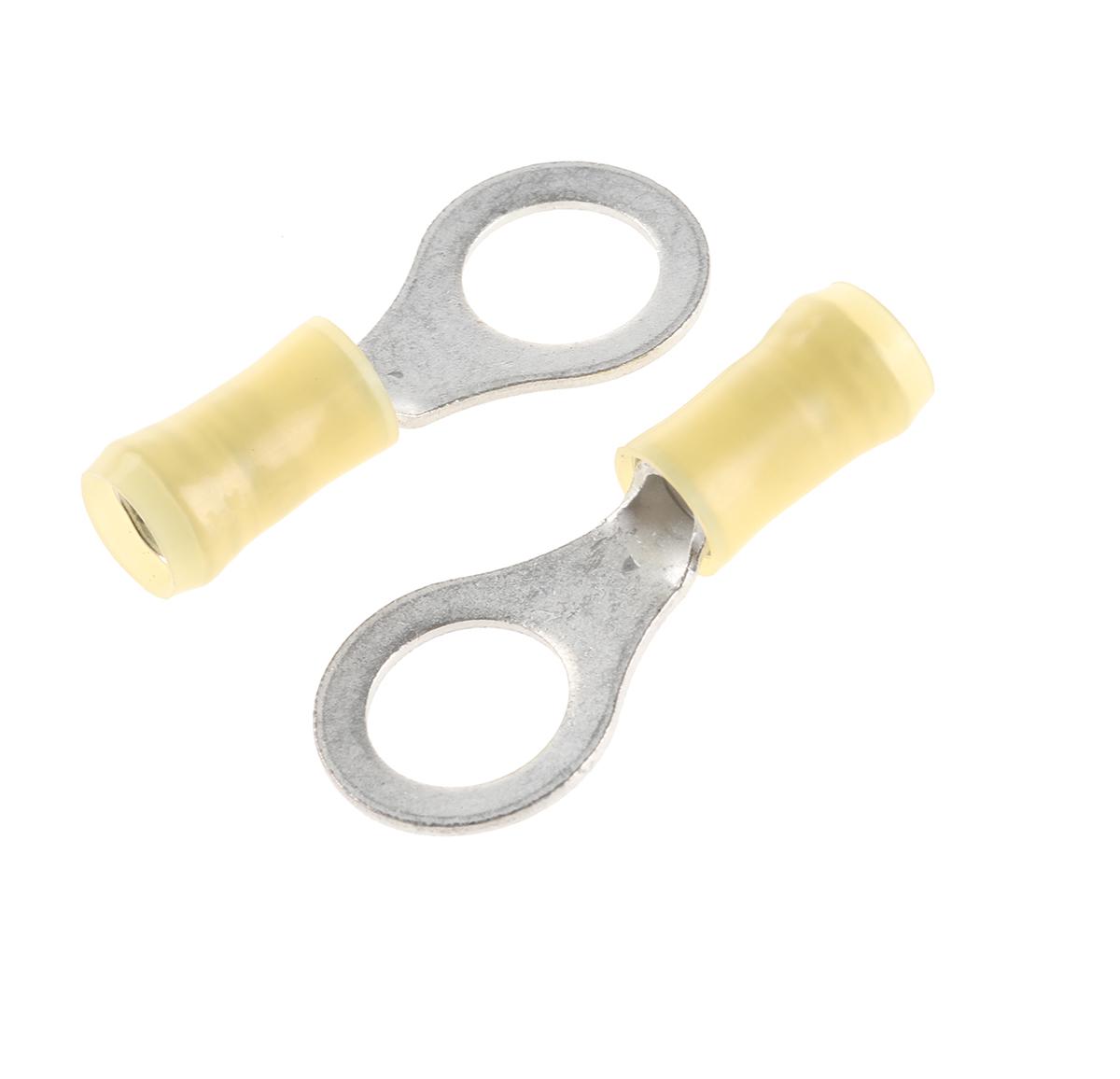 This is PIDG Series Insulated Tin Plated Crimp Ring Terminal M10 Stud Size 2.6mm² to 6.6mm² 12AWG manufactured by TE Connectivity. The manufacturer part number is 35112. The wire has a maximum size of 6.6mm². The product pidg, is a highly preferred choice for users. It has a decent yellow colour. While the minimum wire size AWG includes 12awg. It has a standard m10 size stud . It has a robust nylon insulation material. The high-quality tin is used as contact plating material. It has an overall length of 35.92mm. Insulation Option: insulated. Its maximum wires size includes 10awg. On the other hand, the wire has 2.6mm² of minimum size. The product is made from sturdy copper materials.