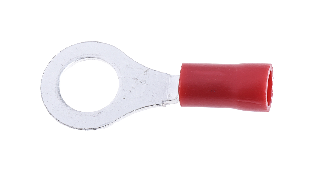 This is Insulated Tin Plated Crimp Ring Terminal M6 Stud Size 0.5mm² to 1.5mm² 22AWG to 16AWG Red manufactured by RS Pro. The manufacturer part number is 534-193. The wire has a maximum size of 1.5mm². It has a decent red colour. While the minimum wire size AWG includes 22awg. It is 0.8mm thick. It has a standard m6 size stud . In addition, its outlet ring diameter is about 11mm . Moreover, the inner ring is about 6.35mm in diameter . It has a robust pvc insulation material. The high-quality tin is used as contact plating material. It has an overall length of 26.7mm. Insulation Option: insulated. Its maximum wires size includes 16awg. On the other hand, the wire has 0.5mm² of minimum size. It has a maximum operating temperature of +75°c. The product is made from sturdy copper materials.