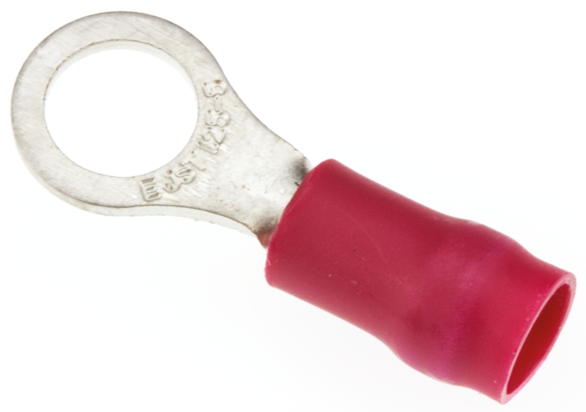 This is R Series Insulated Crimp Ring Terminal 5mm Stud Size 0.25mm² to 1.65mm² 22AWG to 16AWG Red manufactured by JST. The manufacturer part number is FVDWS1.25-5 (LF). On the other hand, the wire has 0.25mm² of minimum size. The wire has a maximum size of 1.65mm². The product r, is a highly preferred choice for users. It has a decent red colour. While the minimum wire size AWG includes 22 awg. It is 0.8mm thick. It has a standard 5 mm size stud . In addition, its outlet ring diameter is about 8mm . Moreover, the inner ring is about 5.3mm in diameter . It has a robust vinyl insulation material. It has an overall length of 20.6mm. Insulation Option: insulated. Its maximum wires size includes 16 awg. ring terminal is a versatile product designed to provide user-defined applications. The product is made from sturdy copper materials.