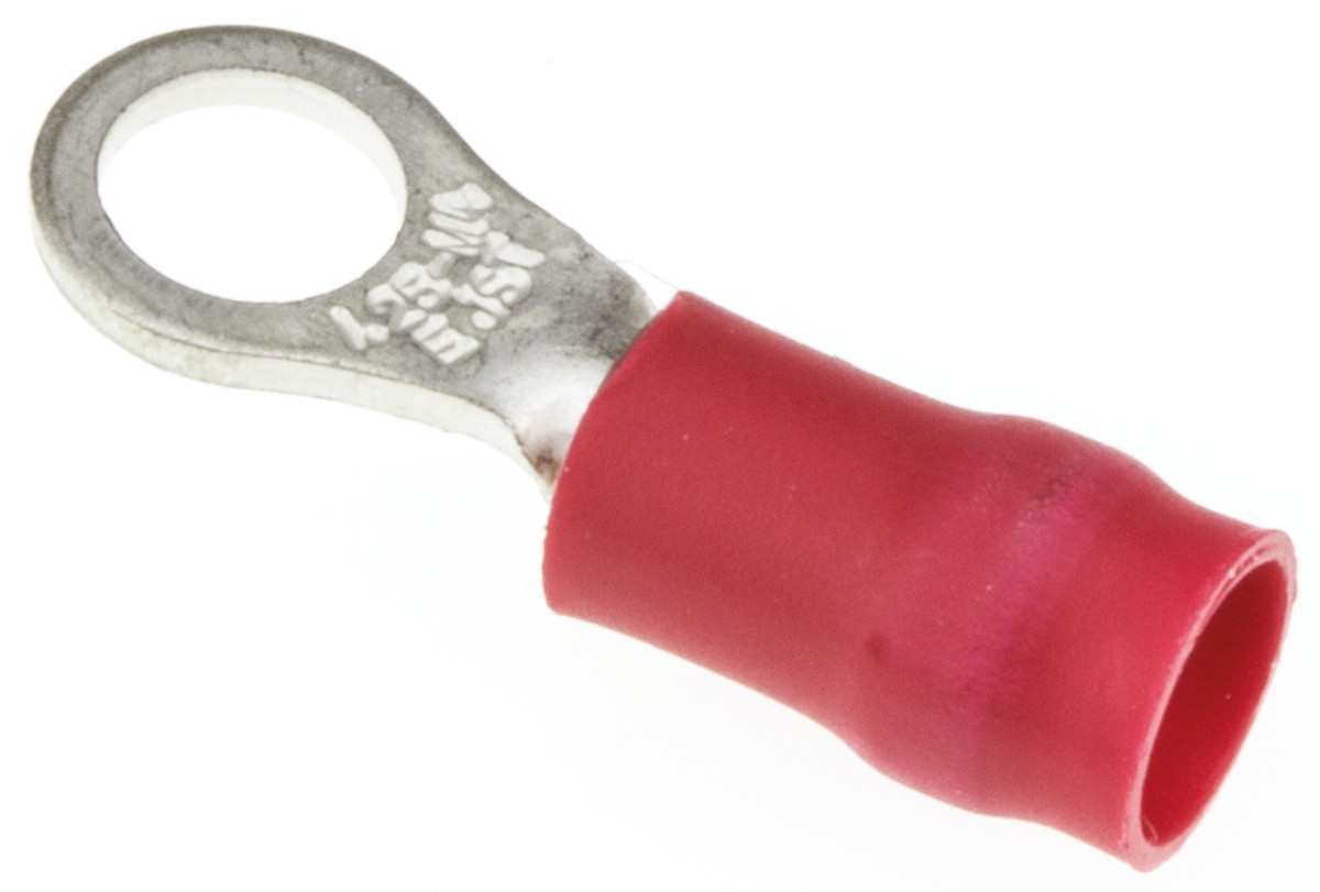 This is R Series Insulated Crimp Ring Terminal 4mm Stud Size 0.25mm² to 1.65mm² 22AWG to 16AWG Red manufactured by JST. The manufacturer part number is FVDWS1.25-M4(LF). The wire has a maximum size of 1.65mm². The product r, is a highly preferred choice for users. It has a decent red colour. While the minimum wire size AWG includes 22awg. It is 0.8mm thick. It has a standard 4mm size stud . In addition, its outlet ring diameter is about 6.6mm . Moreover, the inner ring is about 4.3mm in diameter . It has a robust vinyl insulation material. It has an overall length of 19.2mm. Insulation Option: insulated. Its maximum wires size includes 16awg. On the other hand, the wire has 0.25mm² of minimum size. The product is made from sturdy copper materials.