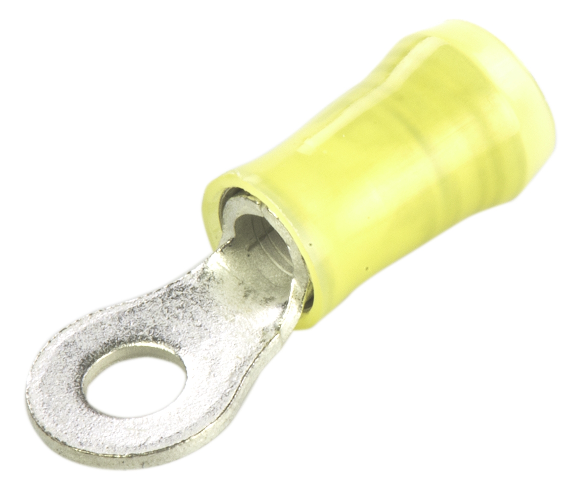 This is PIDG Series Insulated Tin Plated Crimp Ring Terminal M4 Stud Size 2.6mm² to 6.6mm² 12AWG to 10AWG manufactured by TE Connectivity. The manufacturer part number is 35108. The wire has a maximum size of 6.6mm². The high-quality tin is used as contact plating material. The product pidg, is a highly preferred choice for users. It has a decent yellow colour. While the minimum wire size AWG includes 12awg. It is 1.02mm thick. It has a standard m4 size stud . In addition, its outlet ring diameter is about 9.52mm . Moreover, the inner ring is about 4.34mm in diameter . It has a robust nylon insulation material. It has an overall length of 27.51mm. Insulation Option: insulated. Its maximum wires size includes 10awg. On the other hand, the wire has 2.6mm² of minimum size. The product is made from sturdy copper materials.
