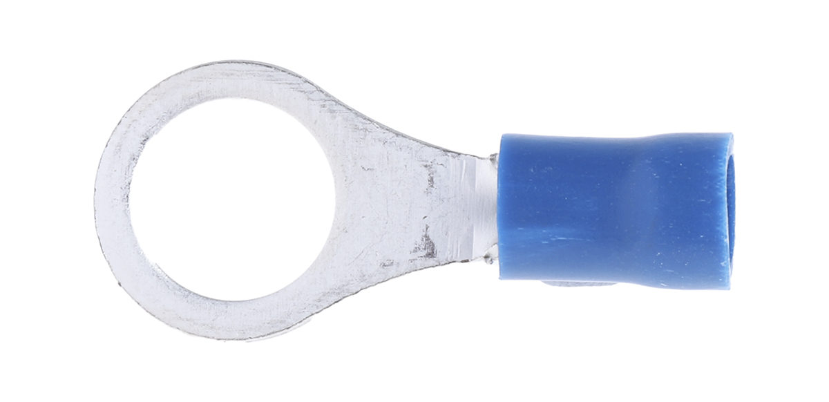 This is Insulated Tin Plated Crimp Ring Terminal M8 Stud Size 1.5mm² to 2.5mm² 16AWG to 14AWG Blue manufactured by RS Pro. The manufacturer part number is 208-2509. The wire has a maximum size of 2.5mm². It has a decent blue colour. While the minimum wire size AWG includes 16awg. It is 0.8mm thick. It has a standard m8 size stud . In addition, its outlet ring diameter is about 12mm . Moreover, the inner ring is about 8.4mm in diameter . It has a robust pvc insulation material. The high-quality tin is used as contact plating material. It has an overall length of 26.7mm. Insulation Option: insulated. Its maximum wires size includes 14awg. On the other hand, the wire has 1.5mm² of minimum size. It has a maximum operating temperature of +75°c. The product is made from sturdy copper materials.