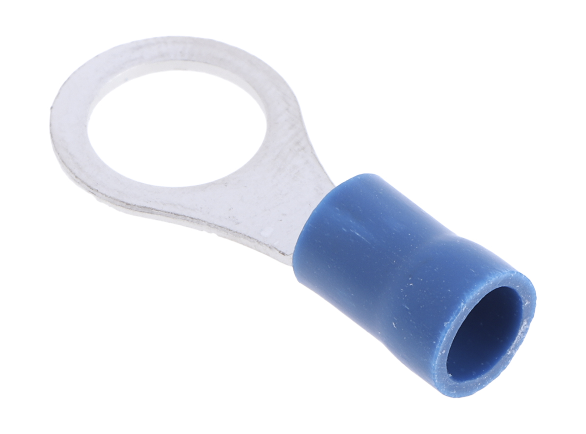 This is Insulated Tin Plated Crimp Ring Terminal M8 Stud Size 1.5mm² to 2.5mm² 16AWG to 14AWG Blue manufactured by RS Pro. The manufacturer part number is 208-2509. The wire has a maximum size of 2.5mm². It has a decent blue colour. While the minimum wire size AWG includes 16awg. It is 0.8mm thick. It has a standard m8 size stud . Moreover, the inner ring is about 8.4mm in diameter . In addition, its outlet ring diameter is about 12mm . The high-quality tin is used as contact plating material. It has an overall length of 26.7mm. Insulation Option: insulated. Its maximum wires size includes 14awg. On the other hand, the wire has 1.5mm² of minimum size. It has a maximum operating temperature of +75°c. It has a robust pvc insulation material. The product is made from sturdy copper materials.
