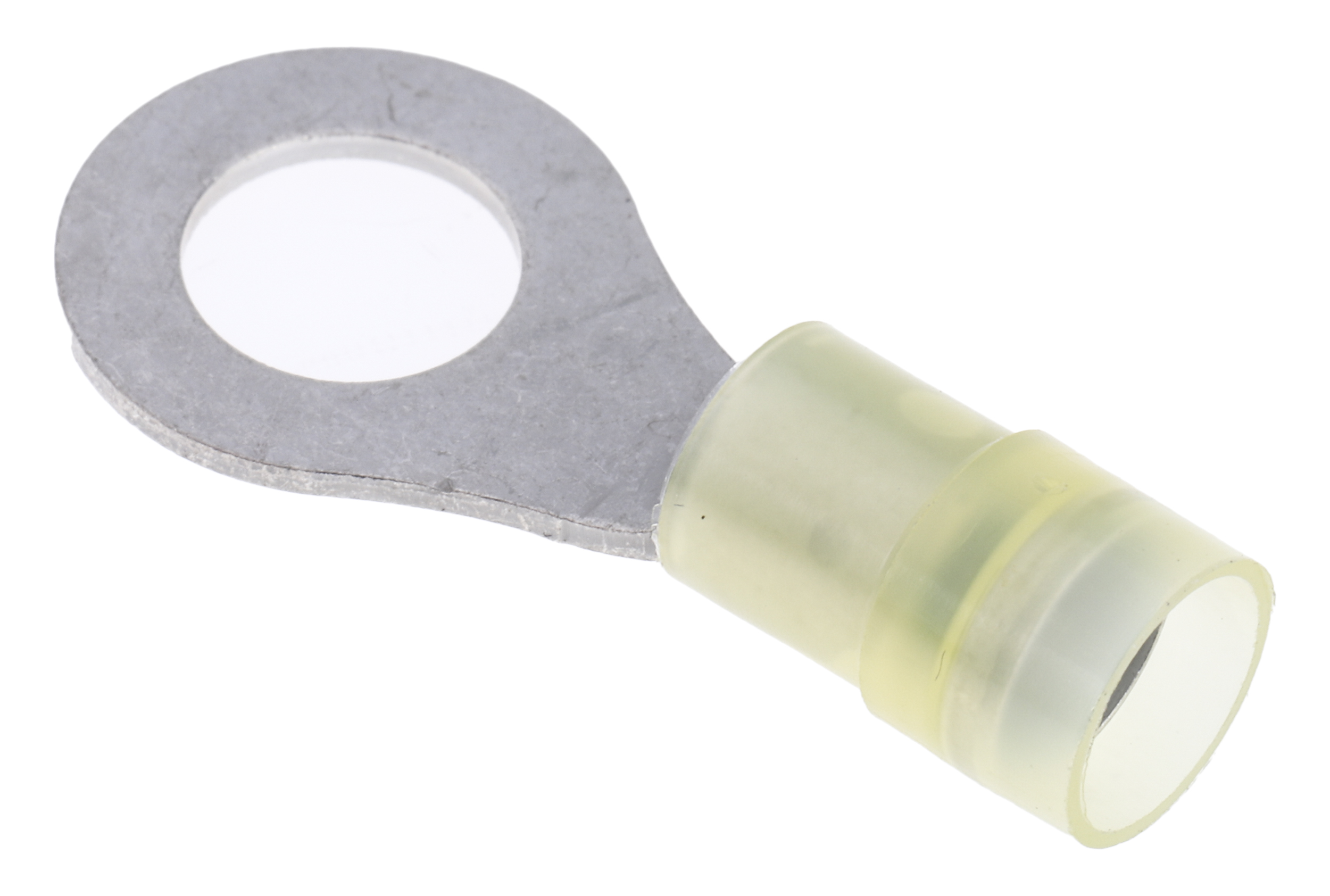This is RNYD Series Insulated Crimp Ring Terminal M8 (5/16) Stud Size 4mm² to 6mm² 12AWG to 10AWG Yellow manufactured by RS Pro. The manufacturer part number is 267-3874. The wire has a maximum size of 6mm². It has a decent yellow colour. While the minimum wire size AWG includes 12awg. It is 1mm thick. It has a standard m8 (5/16) size stud . In addition, its outlet ring diameter is about 15mm . Moreover, the inner ring is about 8.4mm in diameter . It has a robust nylon insulation material. It has an overall length of 34mm. Insulation Option: insulated. Its maximum wires size includes 10awg. On the other hand, the wire has 4mm² of minimum size. The product is made from sturdy copper materials.