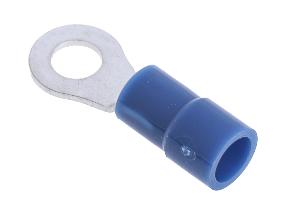 This is Insulated Tin Plated Crimp Ring Terminal M4 Stud Size 1.5mm² to 2.5mm² 16AWG to 14AWG Blue manufactured by RS Pro. The manufacturer part number is 613-9508. The wire has a maximum size of 2.5mm². It has a decent blue colour. While the minimum wire size AWG includes 16awg. It is 0.8mm thick. It has a standard m4 size stud . In addition, its outlet ring diameter is about 8.5mm . Moreover, the inner ring is about 4.3mm in diameter . It has a robust vinyl insulation material. The high-quality tin is used as contact plating material. It has an overall length of 22.8mm. Insulation Option: insulated. Its maximum wires size includes 14awg. On the other hand, the wire has 1.5mm² of minimum size. The product is made from sturdy copper materials.