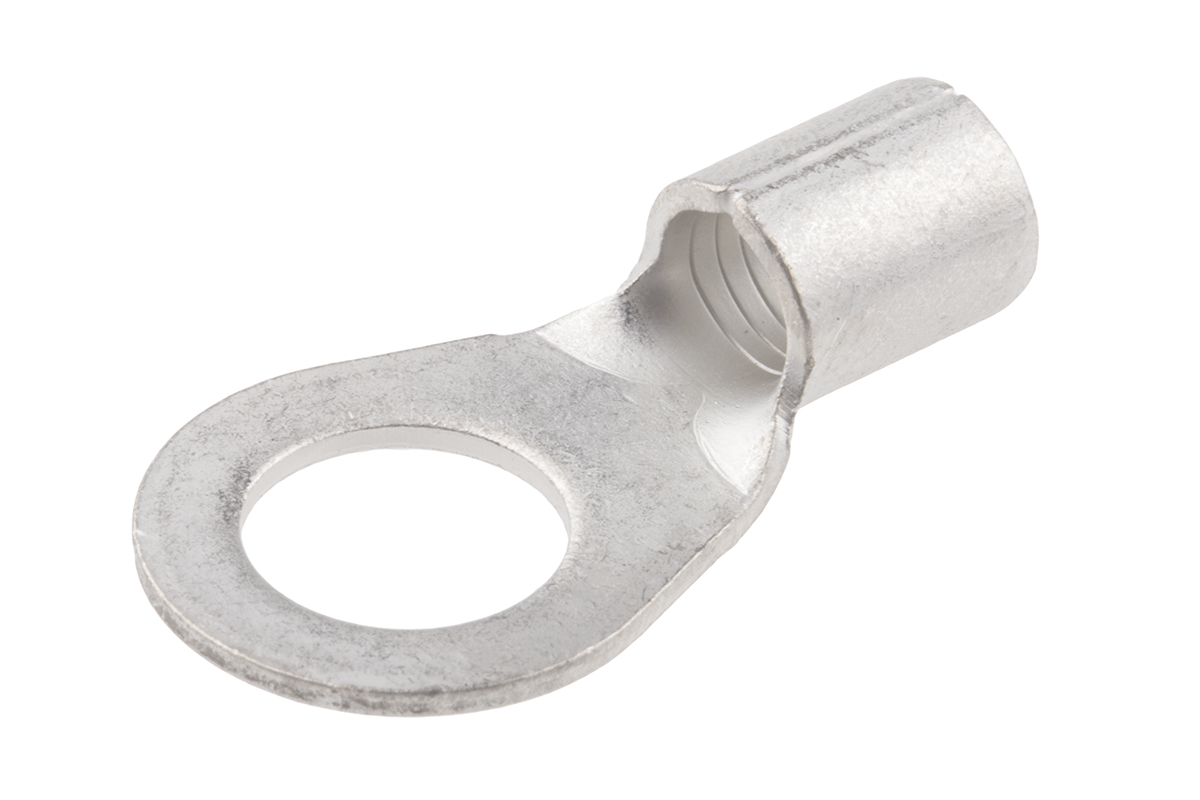 This is Uninsulated Crimp Ring Terminal 10.5mm Stud Size 16mm² to 16mm² 6AWG to 6AWG manufactured by RS Pro. The manufacturer part number is 809-2290. The wire has a maximum size of 16mm². The high-quality tin is used as contact plating material. While the minimum wire size AWG includes 6awg. It is 1.2mm thick. It has a standard 10.5mm size stud . Moreover, the inner ring is about 10.5mm in diameter . In addition, its outlet ring diameter is about 18mm . It has an overall length of 33mm. Insulation Option: uninsulated. Its maximum wires size includes 6awg. On the other hand, the wire has 16mm² of minimum size. It has a maximum operating temperature of +150°c. Whereas, the minimum operating temperature of the product is -40°c. The product is made from sturdy copper materials.