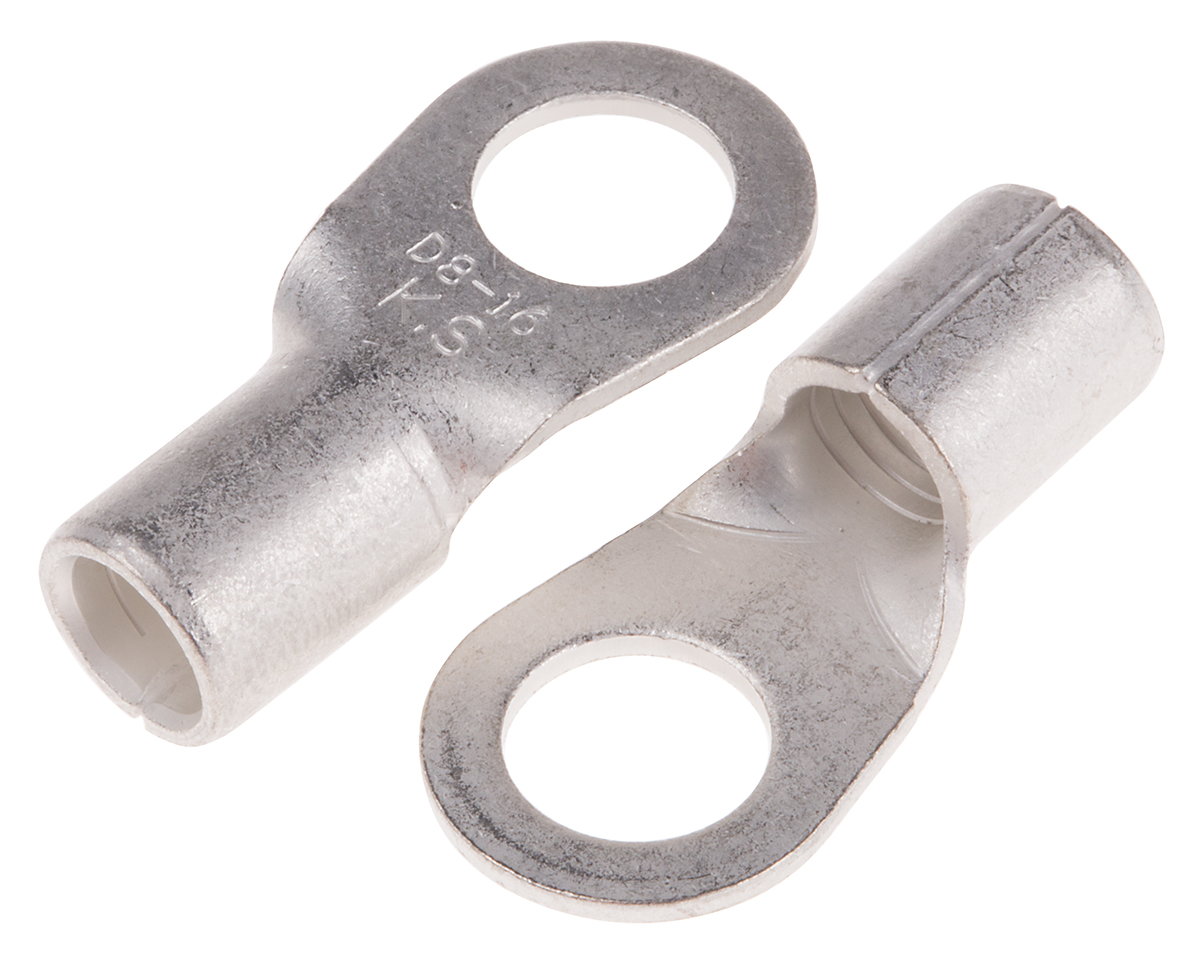 This is Uninsulated Crimp Ring Terminal 8.4mm Stud Size 16mm² to 16mm² 6AWG to 6AWG manufactured by RS Pro. The manufacturer part number is 809-2296. The wire has a maximum size of 16mm². The high-quality tin is used as contact plating material. While the minimum wire size AWG includes 6awg. It is 1.2mm thick. It has a standard 8.4mm size stud . Moreover, the inner ring is about 8.4mm in diameter . In addition, its outlet ring diameter is about 14mm . It has an overall length of 29mm. Insulation Option: uninsulated. Its maximum wires size includes 6awg. On the other hand, the wire has 16mm² of minimum size. It has a maximum operating temperature of +150°c. Whereas, the minimum operating temperature of the product is -40°c. The product is made from sturdy copper materials.