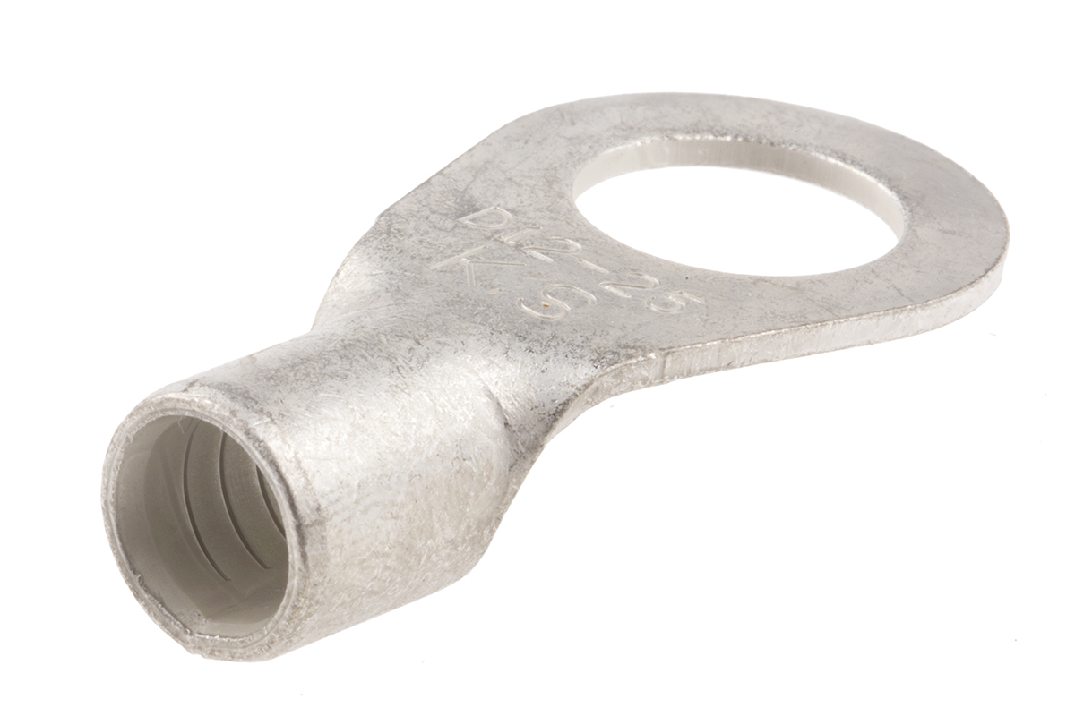 This is Uninsulated Crimp Ring Terminal 13mm Stud Size 25mm² to 25mm² 4AWG to 4AWG manufactured by RS Pro. The manufacturer part number is 809-2319. The wire has a maximum size of 25mm². The high-quality tin is used as contact plating material. While the minimum wire size AWG includes 4awg. It is 1.5mm thick. It has a standard 13mm size stud . Moreover, the inner ring is about 13mm in diameter . In addition, its outlet ring diameter is about 22mm . It has an overall length of 42mm. Insulation Option: uninsulated. Its maximum wires size includes 4awg. On the other hand, the wire has 25mm² of minimum size. It has a maximum operating temperature of +150°c. Whereas, the minimum operating temperature of the product is -40°c. The product is made from sturdy copper materials.