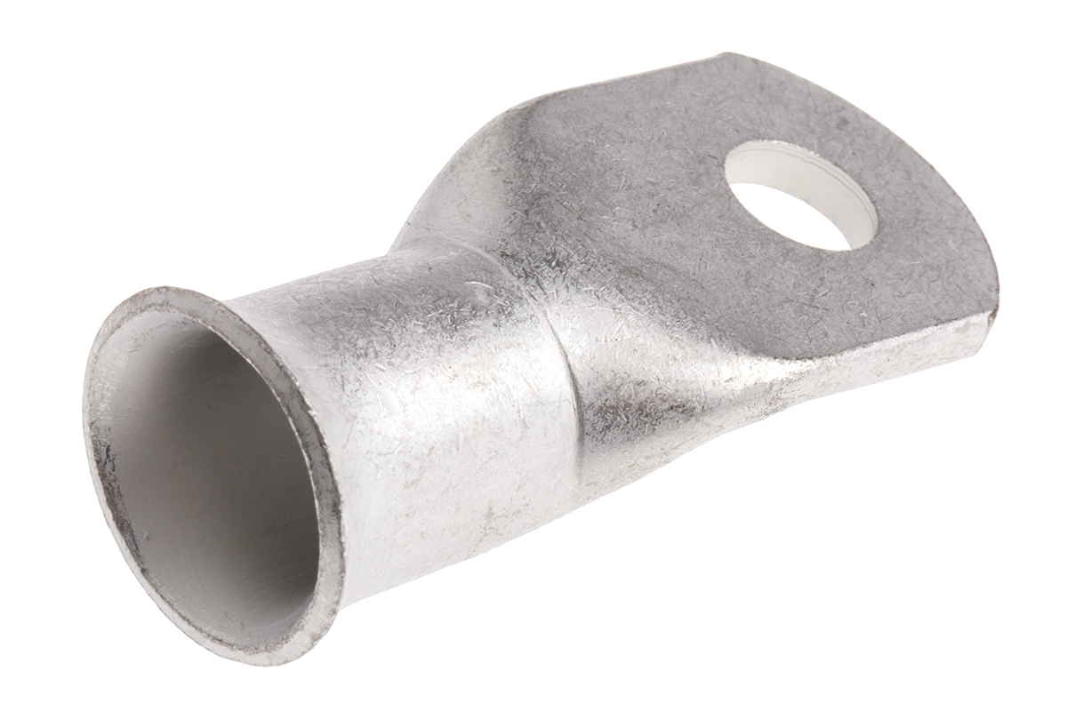 This is Uninsulated Tin Plated Tubular Ring Terminal 10mm Stud Size 120mm² to 120mm² manufactured by RS Pro. The manufacturer part number is 841-7655. It is supplied as unshrouded. The wire has a maximum size of 120mm². It has a decent natural colour. While the minimum wire size AWG includes 4/0awg. It is 2mm thick. It has a standard 10mm size stud . In addition, its outlet ring diameter is about 19mm . Moreover, the inner ring is about 15mm in diameter . It has a robust copper insulation material. The high-quality tin is used as contact plating material. It has an overall length of 60mm. Insulation Option: uninsulated. Its maximum wires size includes 4/0awg. On the other hand, the wire has 120mm² of minimum size. It has a maximum operating temperature of +120°c. Whereas, the minimum operating temperature of the product is -30°c. The product is made from sturdy copper materials.