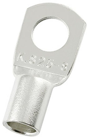 This is Uninsulated Crimp Ring Terminal M8.4 (5/16) Stud Size to 25mm² to 4AWG manufactured by RS Pro. The manufacturer part number is 125-1962. The wire has a maximum size of 25mm². The high-quality tin is used as contact plating material. While the minimum wire size AWG includes 4awg. It is 1.65mm thick. It has a standard m8 size stud . Moreover, the inner ring is about 8.4mm in diameter . In addition, its outlet ring diameter is about 15mm . It has an overall length of 33mm. Insulation Option: uninsulated. Its maximum wires size includes 4awg. On the other hand, the wire has 25mm² of minimum size. It has a maximum operating temperature of +150°c. Whereas, the minimum operating temperature of the product is -40°c. The product is made from sturdy copper materials.