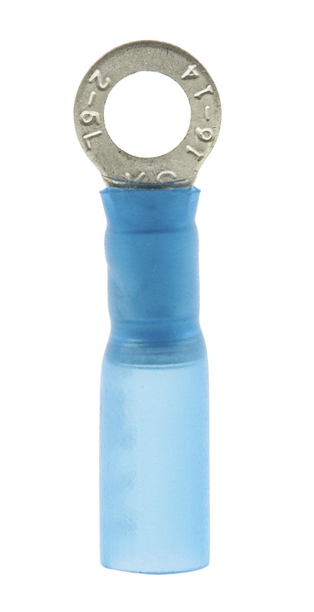 This is HEAT SHRINKABLE-RING TERMINALS "HD" (DO manufactured by RS PRO. The manufacturer part number is 178-8431. The wire has a maximum size of 2.5mm². It has a decent blue colour. While the minimum wire size AWG includes 16awg. It has a standard 5.3mm size stud . Moreover, the inner ring is about 5.3mm in diameter . In addition, its outlet ring diameter is about 9.5mm . Whereas, the minimum operating temperature of the product is -40°c. It has an overall length of 31.8mm. Insulation Option: insulated. Its maximum wires size includes 14awg. On the other hand, the wire has 1.5mm² of minimum size. It has a maximum operating temperature of +105°c. The product is made from sturdy copper materials.