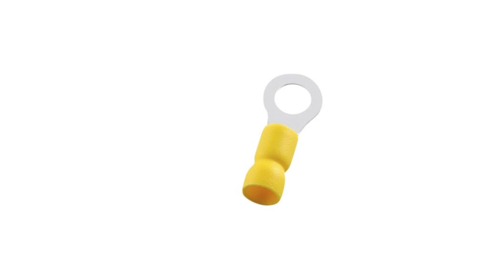This is Ring terminal yellow 8.4mm Vinyl manufactured by RND. The manufacturer part number is RND 465-00637.