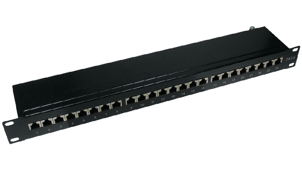 This is Patchpanel 19inc black 1 HE 24 Port Cat6 manufactured by Value. The manufacturer part number is 26.99.0353.