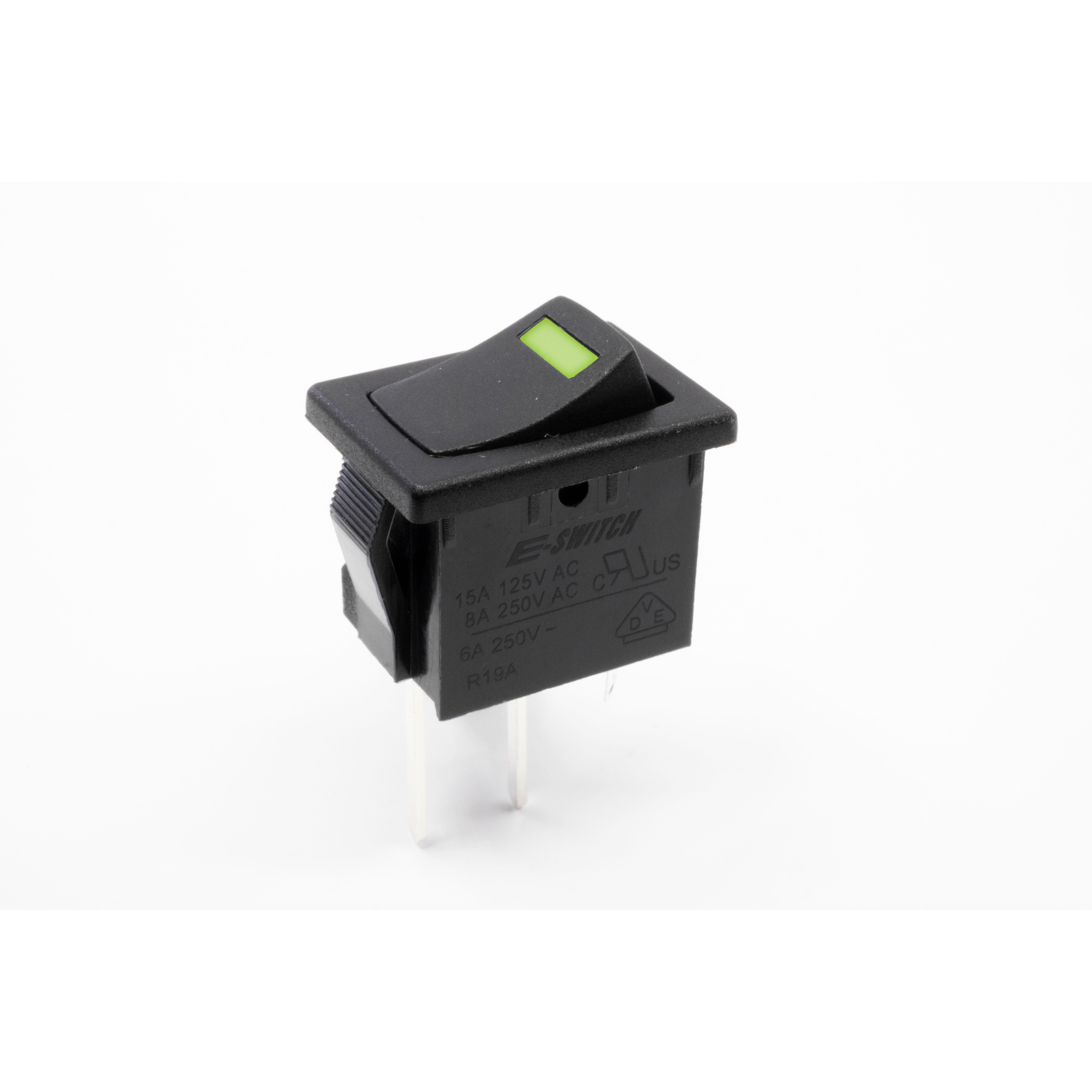 This is manufactured by E-Switch. The manufacturer part number is R1966ABLKBLKEPGRN. It is assigned with possible HTSUS value of 8536.50.9065. The product is rohs3 compliant. The product offers long-lasting services of 10,000 cycles. Moreover, it has pc pin terminal style. The product has -30°c ~ 65°c operating temperature range. It also has a rectangular - 19.40mm x 13.00mm dimensional features. The product also provide mechanical stability with 30,000 cycles. The product exhibits 125 v of AC voltage rating. In addition, it is reach unaffected. It is supplied with led, green illumination. It is designed as a on-off switching function. Its typical moisture sensitivity level is 1 (unlimited). The actuator marking of the product corelates with no marking. It has an integral spst circuit. It has a long 14 weeks standard lead time. Additionally, the product's output is 15a (ac). The product is available in panel mount, snap-in configuration. The product r1966, is a highly preferred choice for users. In addition, bulk is the available packaging type of the product. It is made from black. The product carries concave (curved) - illuminated actuator. The nominal illumination voltage of the product is 2.2 vdc. Moreover, it corresponds to r1966abl, a base product number of the product. The product is designated with the ear99 code number.
