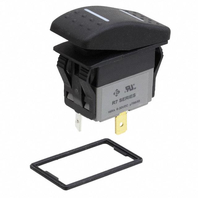 This is manufactured by E-Switch. The manufacturer part number is R713FB4-SXXX2B4GRW. It is assigned with possible HTSUS value of 8536.50.9065. The product is rohs3 compliant. The product offers long-lasting services of 10,000 cycles. Moreover, it has quick connect - 0.250" (6.3mm) terminal style. 30 v of DC voltage rating. The product has 0°c ~ 55°c operating temperature range. It is approved by culus. It also has a rectangular - 37.00mm x 21.10mm dimensional features. It is made from black. In addition, it is reach unaffected. It is supplied with led, green/red illumination. It is designed as a on-off-on switching function. Its typical moisture sensitivity level is 1 (unlimited). The actuator marking of the product corelates with no marking. It has an integral spdt circuit. It has a long 14 weeks standard lead time. Additionally, the product's output is 16a (dc). It is IP rated with ip67 - dust tight, waterproof. The product is available in panel mount, snap-in configuration. The product r7, is a highly preferred choice for users. In addition, bulk is the available packaging type of the product. The product carries convex (reverse v) - illuminated actuator. The nominal illumination voltage of the product is 12 vdc. Moreover, it corresponds to r713fb4, a base product number of the product. The product is designated with the ear99 code number.
