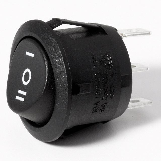 This is manufactured by E-Switch. The manufacturer part number is RR3112DBLKBLKNEFO. It is assigned with possible HTSUS value of 8536.50.9065. The product is rohs3 compliant. Moreover, it has quick connect - 0.187" (4.7mm) terminal style. The product has 0°c ~ 65°c operating temperature range. It also has a circular - 20.20mm dia dimensional features. It is made from black. The product exhibits 125 v of AC voltage rating. In addition, it is reach unaffected. It is designed as a on-off-on switching function. Its typical moisture sensitivity level is 1 (unlimited). The actuator marking of the product corelates with no marking. It has an integral spdt circuit. It has a long 13 weeks standard lead time. Additionally, the product's output is 16a (ac). The product is available in panel mount, snap-in configuration. The product rr3112, is a highly preferred choice for users. In addition, bulk is the available packaging type of the product. The product carries round actuator. Moreover, it corresponds to rr3112d, a base product number of the product. The product is designated with the ear99 code number.